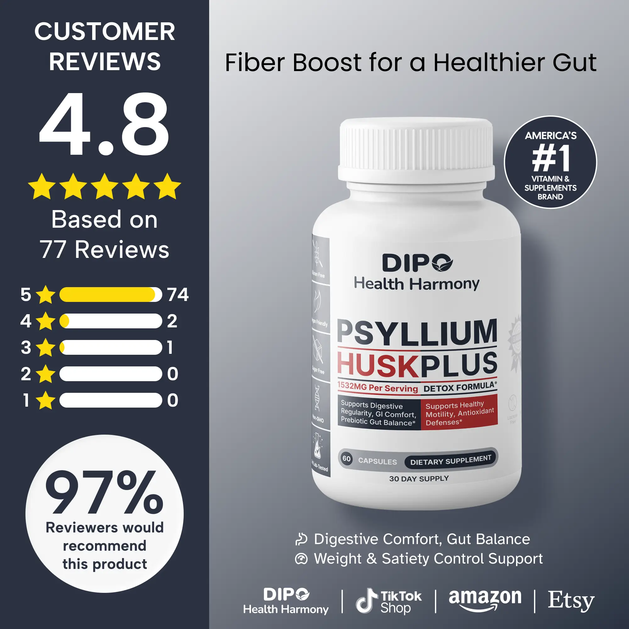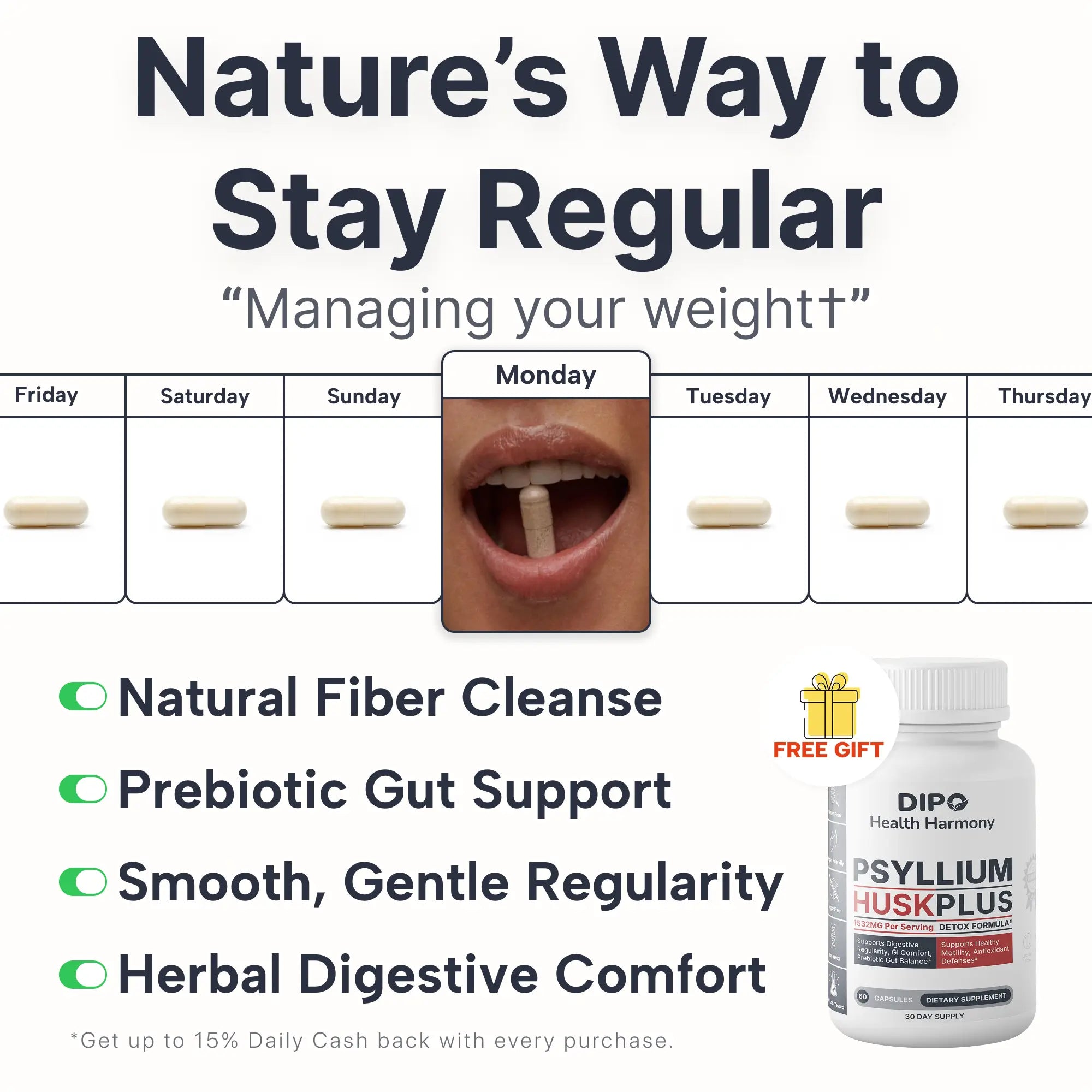 ⚠️ Important: Always consume with sufficient water when taking psyllium fiber.