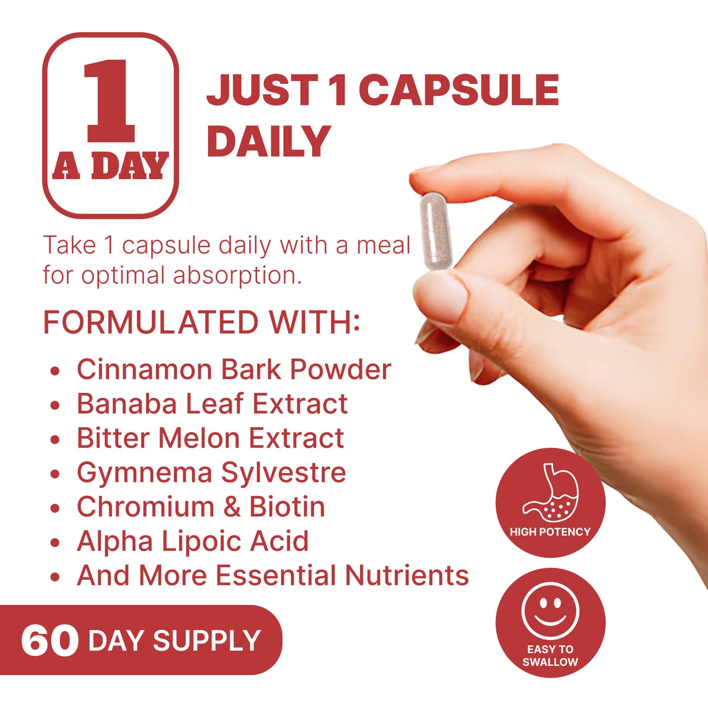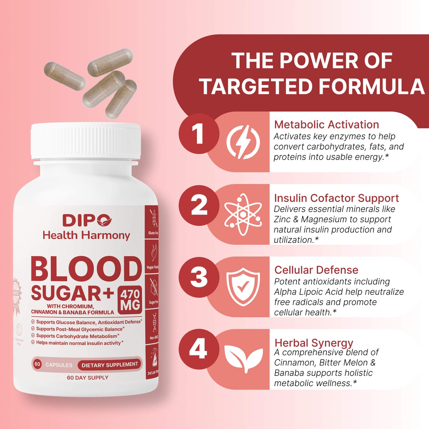The formula works through multiple supportive pathways. Minerals and vitamins help enzymes use nutrients and maintain metabolic steadiness, while botanicals like banaba, cinnamon, and bitter melon support post-meal glucose handling. Antioxidants including Vitamin C, Vitamin E, and Alpha-Lipoic Acid provide additional cellular protection.