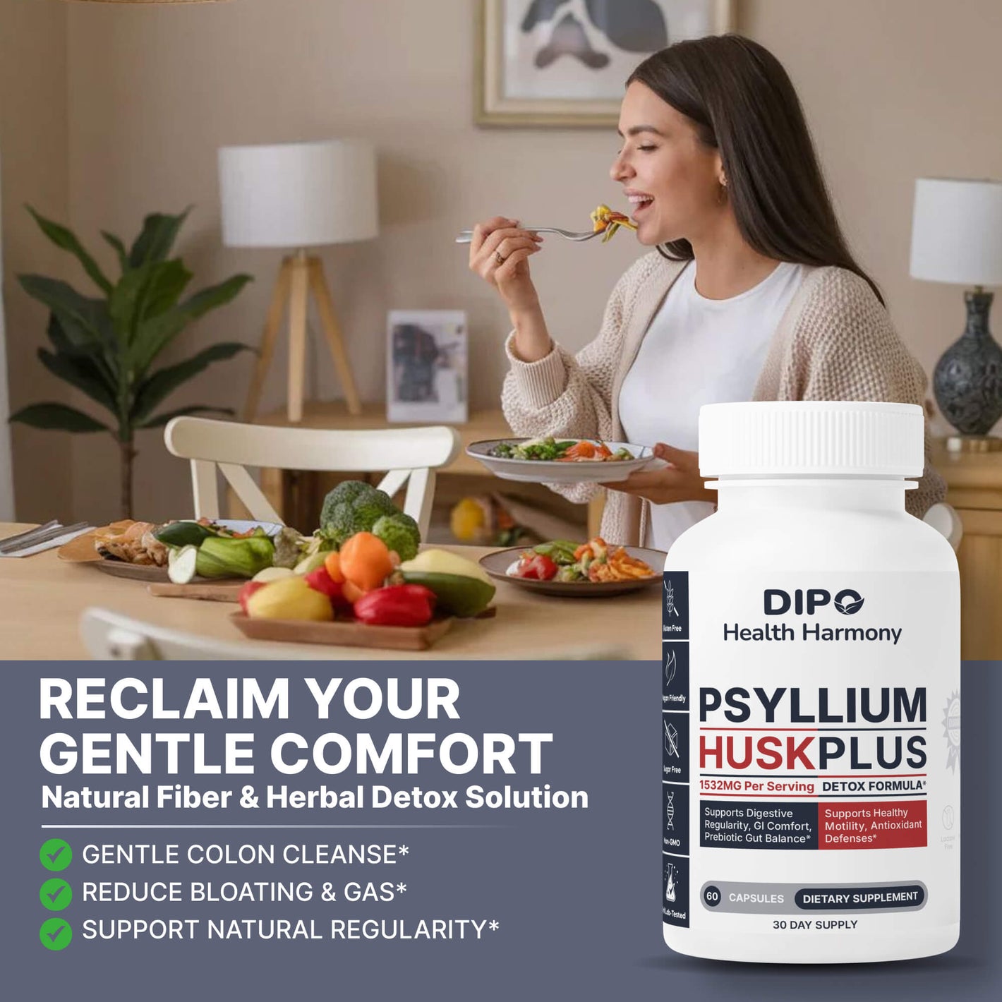 DIPO’s Psyllium Husk Plus keeps everything balanced. No bloating, no discomfort, just natural, easy digestion every day.
