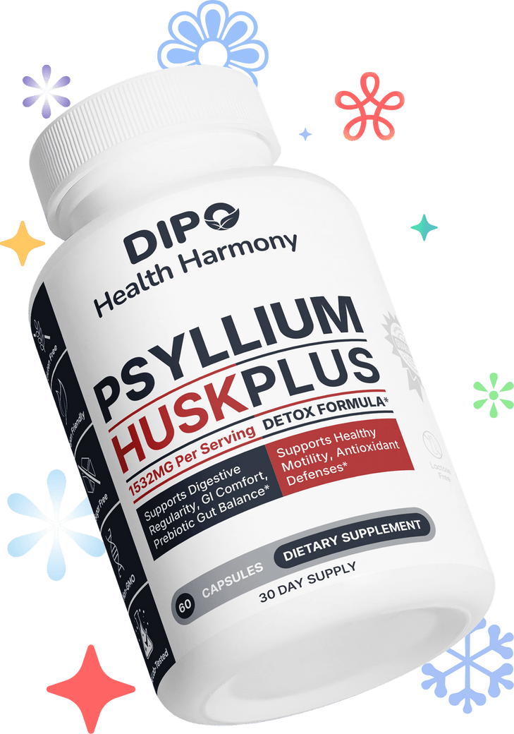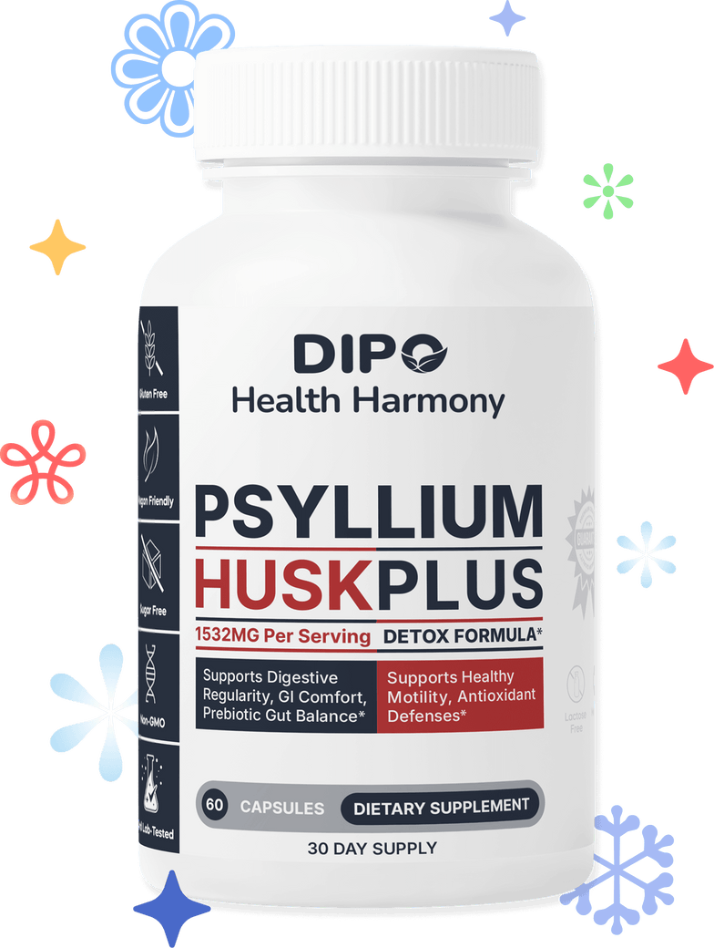 DIPO Psyllium Husk Plus delivers an advanced blend of soluble fiber, prebiotics, and herbal extracts to support digestive balance and daily regularity.