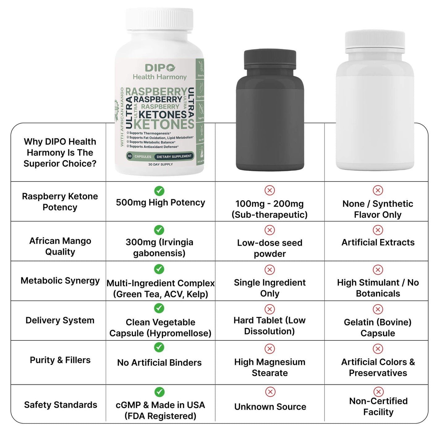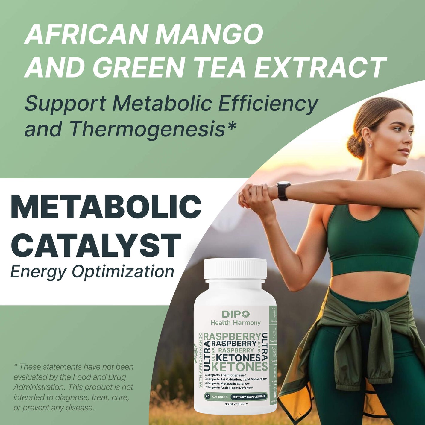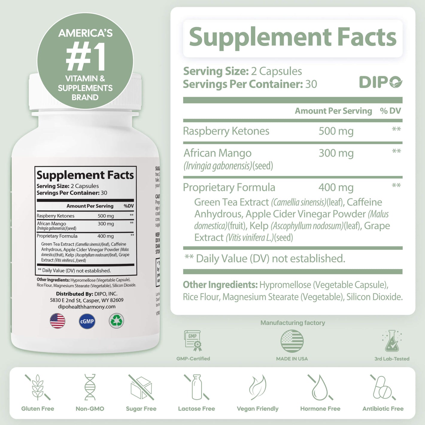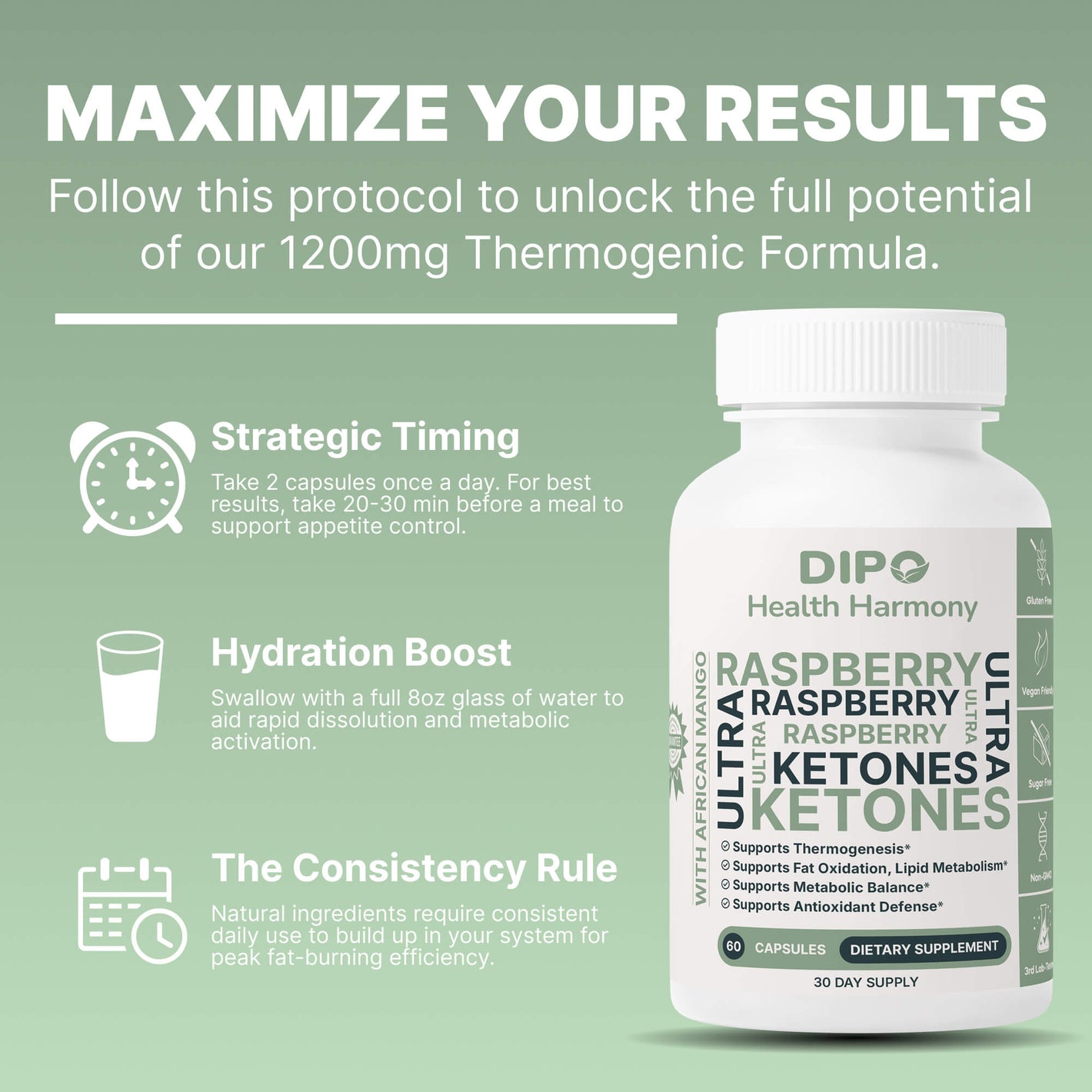 DIPO Raspberry Ketones Ultra with African Mango, Green Tea & Caffeine – Supports Metabolism, Energy & Appetite Control – Non-GMO, Gluten-Free, Lactose Free, Sugar-Free, Vegan, 60 Capsules