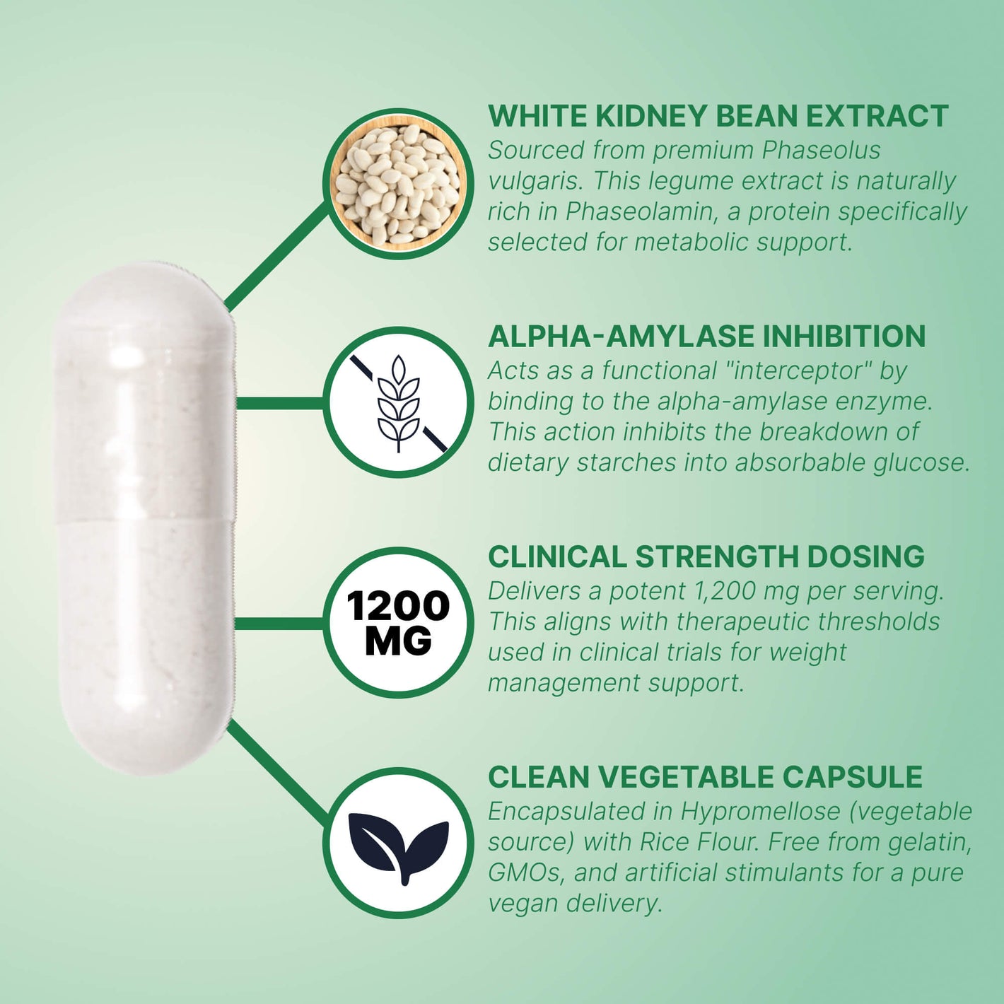 This extract naturally contains alpha-amylase inhibitors (such as phaseolamin) that work locally in the digestive tract. These compounds interact with enzymes that process complex starches, which can result in a more gradual breakdown of these carbohydrates